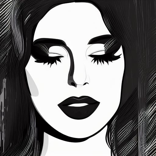 A black and white drawing of a woman’s face