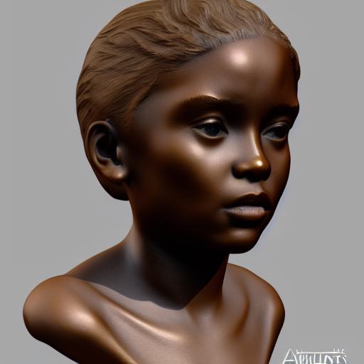 A bronze bust sculpture of a girl