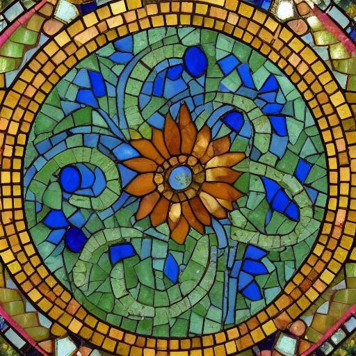 A close up of a flower on a mosaic