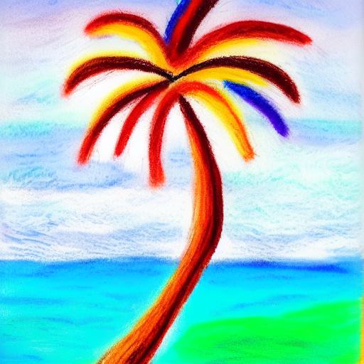 A color painting of the palm tree on a beach
