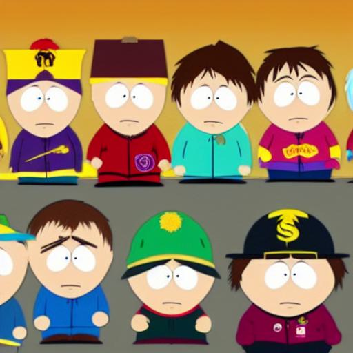 The first part of the prompt, “a group of cartoon characters South Park by Trey Parker and Matt Stone,” provides the AI with a specific subject matter to work with. South Park is a popular animated television show known for its unique and often controversial humor. The mention of Trey Parker and Matt Stone as the creators of the show provides further context and a clear visual reference point for the AI.