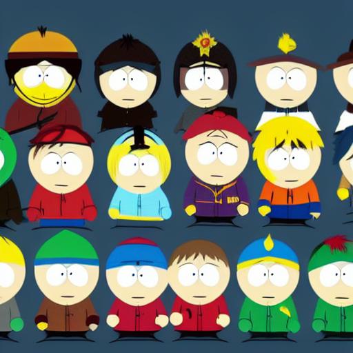 A group of south park cartoon characters by Trey Parker