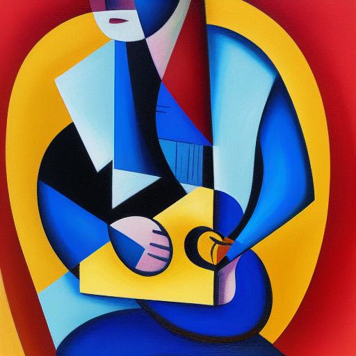 A joyful painting of a man playing a guitar