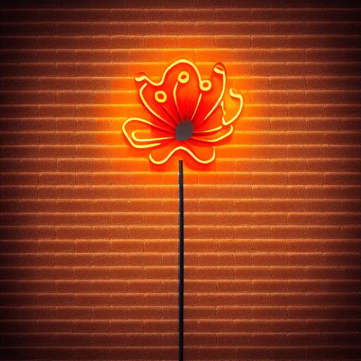 A orange flower neon sign on a brick wall