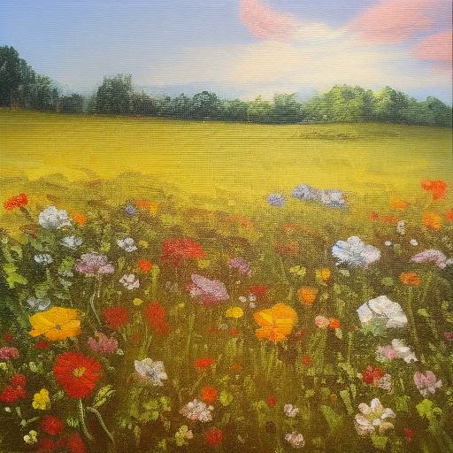 A painting of a bunch of little flowers in a field