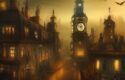 Lastly, the mention of a “steampunk city” sets the genre and style, invoking a fusion of retro-futuristic technology, intricate gears, and Victorian-inspired designs. It prompts the AI to create a cityscape that captures the essence of this popular subgenre.