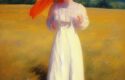 - Additional details: The prompt includes specific details such as the woman standing with a parasol, which further defines the composition and mood of the painting.