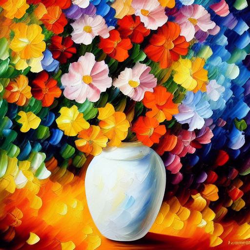A painting of bright flowers in a vase on a table