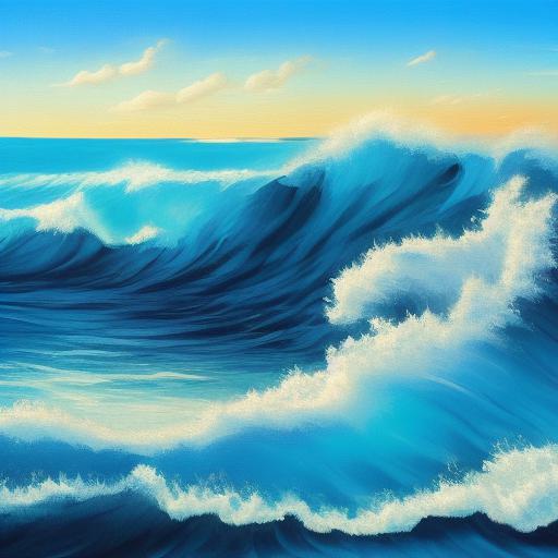 A painting of sea waves and blue sky