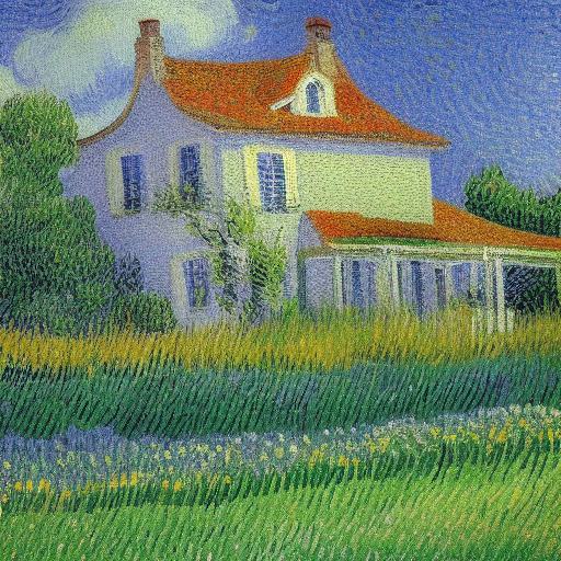 A painting of the house in a garden