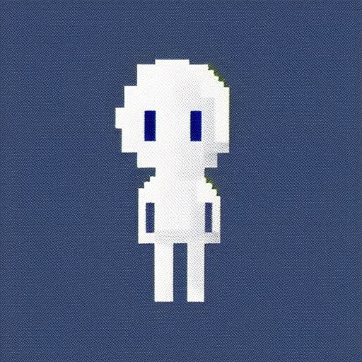 A pixel image of an alien on a blue background