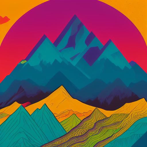 A psychedelic poster with mountains