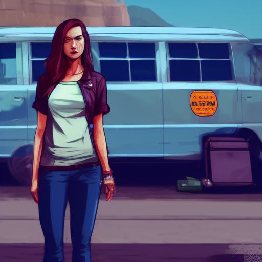 A woman that is standing in front of a van