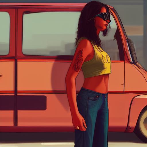 A woman that is standing in front of a van