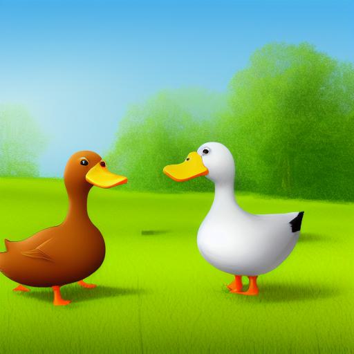 Couple of ducks standing on grass field