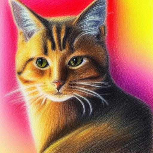 Firstly, the prompt specifies that the image is a crayon drawing of one cat. This immediately sets the style of the image and suggests that it will have a somewhat childlike quality to it. The use of crayons as a medium also implies that the image will be colorful and vibrant, with a range of bright, bold hues.