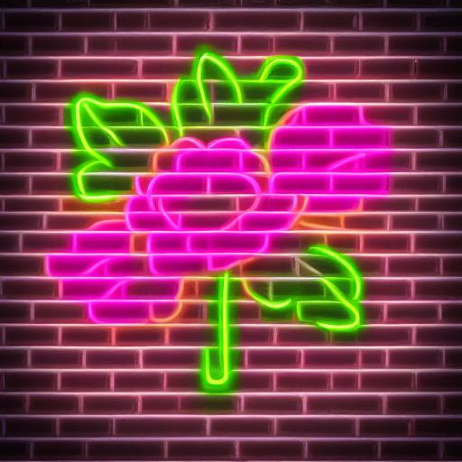 Flower neon sign on a brick wall