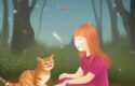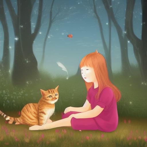 The first part of the prompt sets the scene by describing a “girl sitting on the ground next to a cat”. This suggests a specific setting and context for the image, which the AI can use to generate appropriate visual elements. The presence of a cat may also indicate that the image should have a cozy, comforting feel.