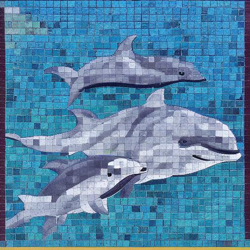 Mosaic of a dolphin in the costal inspired by Charles Ginner