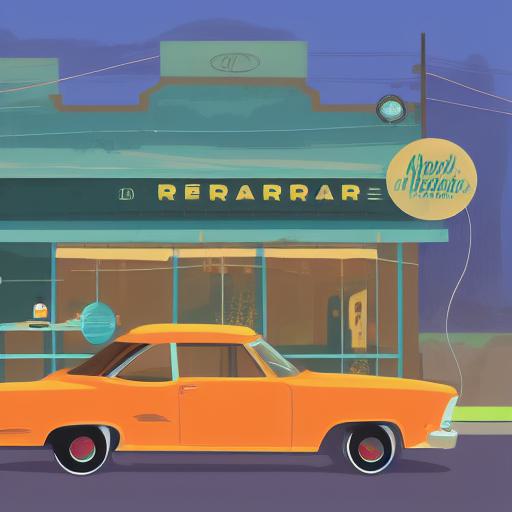 One car is parked in front of a restaurant
