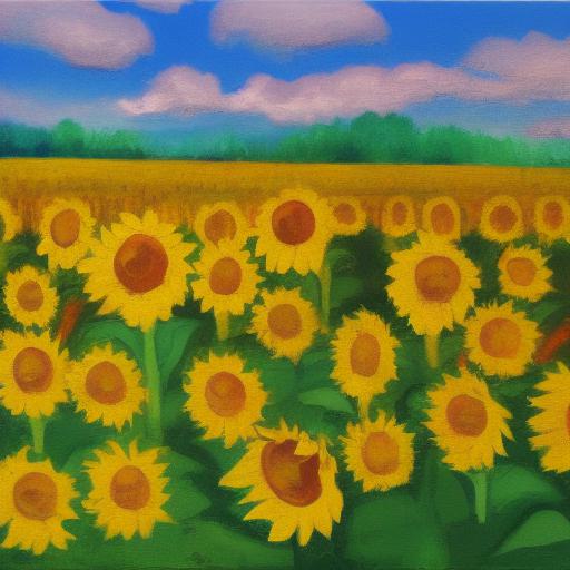 The painting of sunflowers in a field