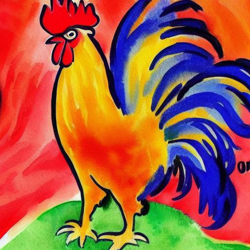 The watercolor painting of a rooster
