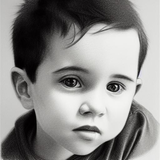 A black and white drawing of a young age boy