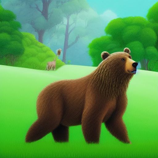 A brown bear in the lush green field
