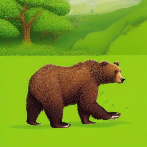 A brown bear on the lush green field