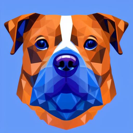 A close up of a dog’s face on a blue background
