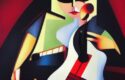 How might the use of cubist techniques influence the overall composition and design of the image of a girl playing a guitar?
