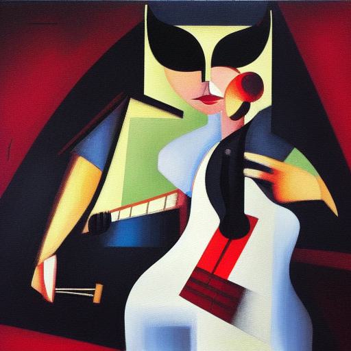 Cubism is characterized by the use of geometric shapes and the fragmentation of form. In the context of the image of a girl playing a guitar, this might mean incorporating angular or abstract shapes into the design of the girl, the guitar, or the background. The use of multiple viewpoints or perspectives might also be employed, creating a sense of depth and movement within the image.