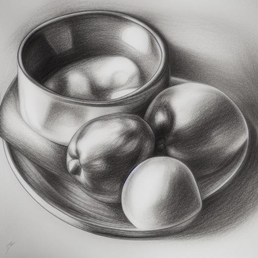 A drawing of a bowl of fruits
