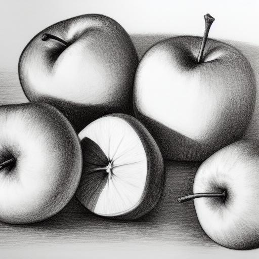 A drawing of a group of apples on a table