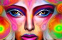 - Color: The prompt mentions that the woman’s face is painted with vibrant colors, blending with the flower’s color. This sets the tone for the image and gives it a psychedelic feel. The use of vibrant colors adds energy and emotion to the image.