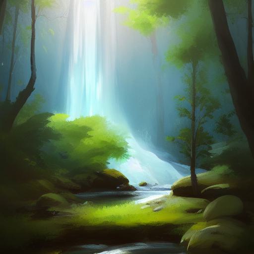 A painting of a waterfall in a forest