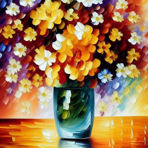 A painting of flowers in a vase on a table