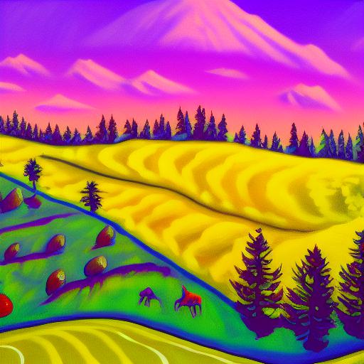 A painting of some animals in a field