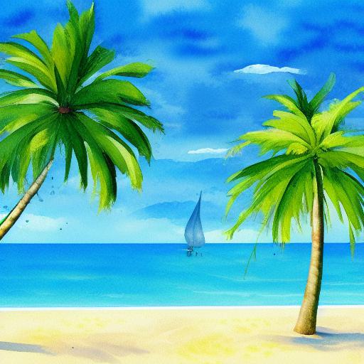 A painting of the palm tree and the beach