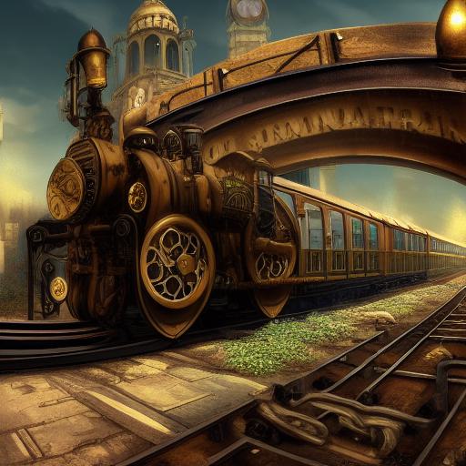 A steampunk train traveling through a city