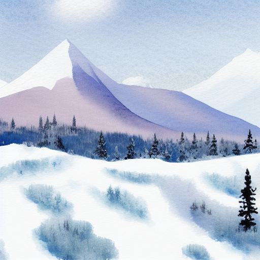 The second element is the subject matter, a snowy mountain scene. This prompts the AI algorithm to create an image that features a mountain landscape covered in snow. The image may include other elements such as trees, rocks, and perhaps a body of water. The snowy mountain scene is an evocative subject that can inspire a range of emotions and moods, from peaceful and serene to harsh and dramatic.