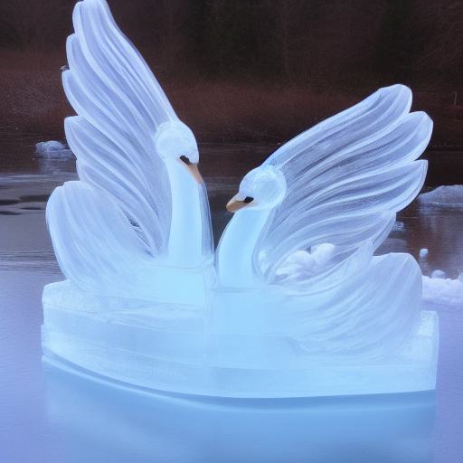 An tranquil ice sculpture of two flowing ice-made swans on a wave