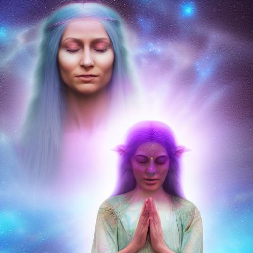 There are many ways to create a cohesive color scheme for a digital art image, but one approach is to use a color wheel or palette generator tool to choose colors that complement each other. The prompt specifically mentions a mix of blue and purple for the woman’s dress, so the AI may have used a similar tool or algorithm to select other colors for the image that would blend well with the space background and psychedelic theme.