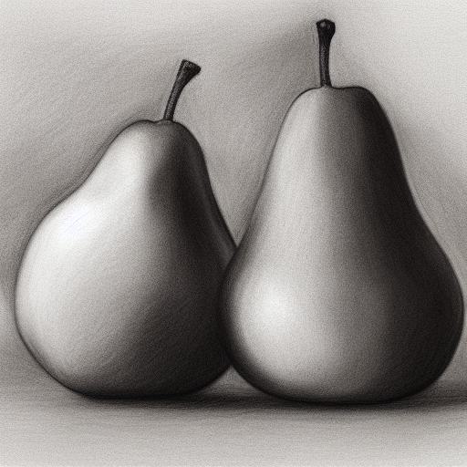 Art charcoal drawing of a pear and an apple on a table