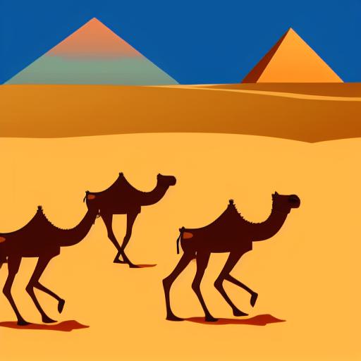 Camels walking in a desert in summer season