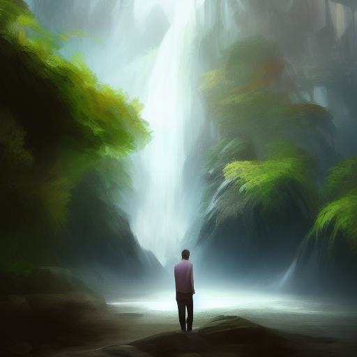 Digital painting of man standing in front of a waterfall