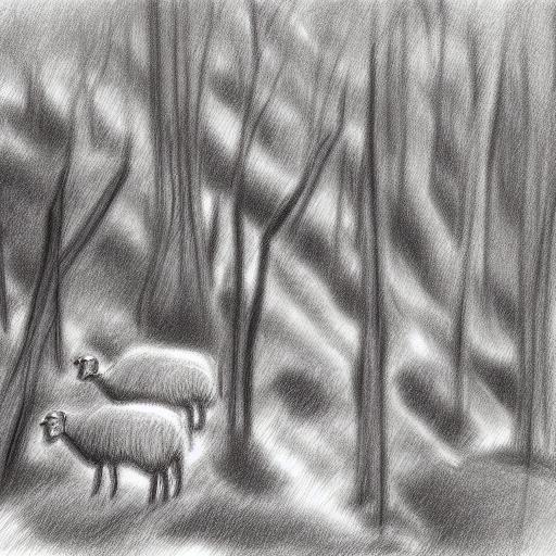 Drawing of sheep and trees in the forest