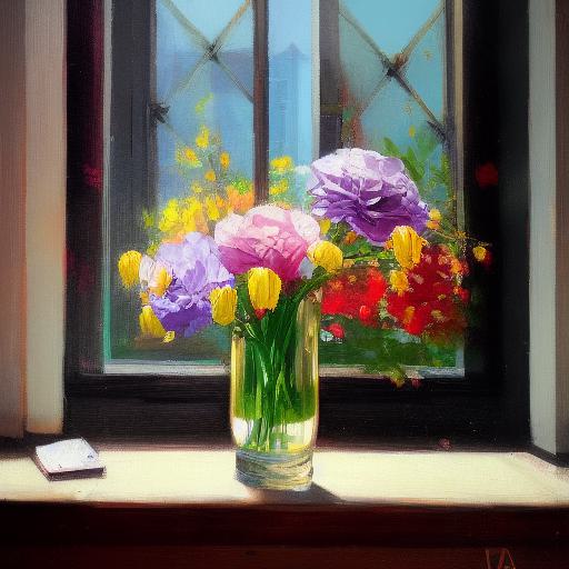 Flowers in a vase on a window side painting