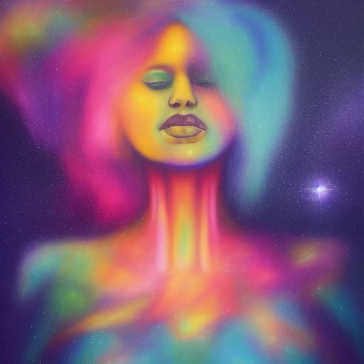 2. Dreamy painting of a woman surrounded by a rainbow – This provides a specific subject matter for the image and adds an emotional element. Including descriptive words like “dreamy” and “rainbow” can help the AI understand what kind of aesthetic or style is desired.
