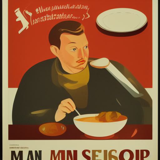 Man holding spoon in front of a bowl of soup